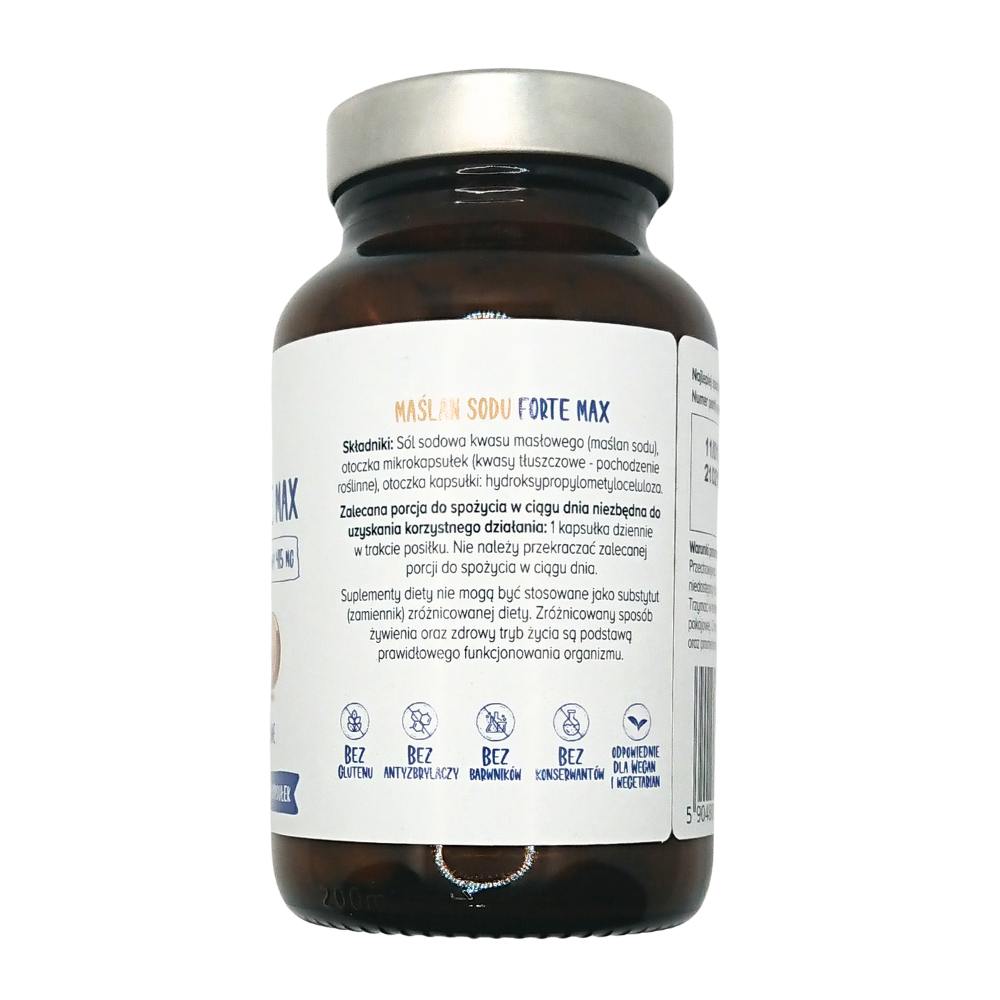 Maślan sodu jest substancją endogenną, co oznacza, że występuje naturalnie w organizmie i może być wytwarzany przez nasze ciało z dostarczanego mu pożywienia. Kwas masłowy, będący solą sodową, powstaje w jelitach, szczególnie w okrężnicy, w wyniku procesu fermentacji bakteryjnej z węglowodanów, takich jak błonnik. Jego główną funkcją jest dostarczanie energii komórkom nabłonka jelitowego. Dzięki temu utrzymywane jest właściwe pH w jelitach, co jest niezbędne do prawidłowego przebiegu procesów zachodzących w tym obszarze. Prawidłowe pH tworzy odpowiednie warunki dla wzrostu odpowiednich bakterii w mikroflorze jelitowej, która odgrywa ogromną rolę w naszym ogólnym samopoczuciu.