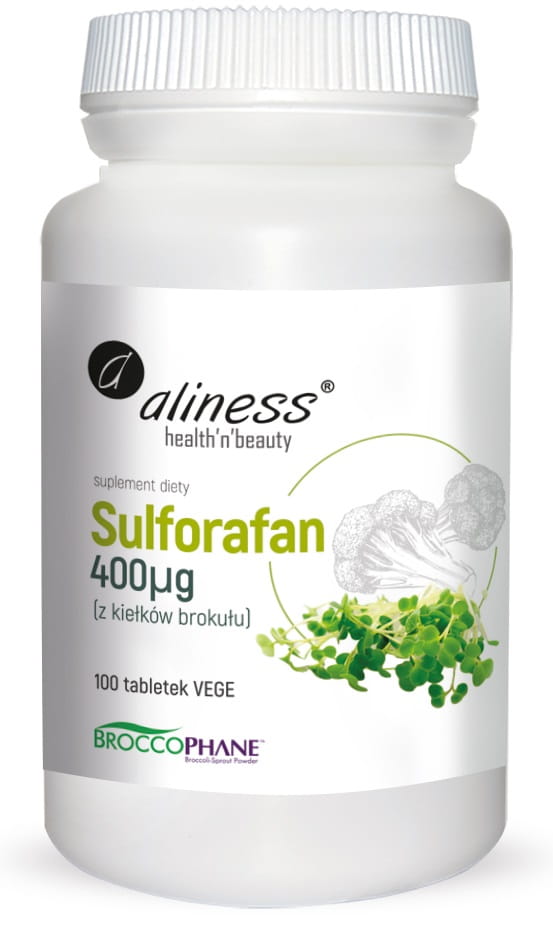 Aliness Sulforafan 400 µg zawiera najwyższej jakości, naturalny proszek z kiełków brokułów BroccoPhane® standaryzowany na minimum 0,4% sulforafanu.