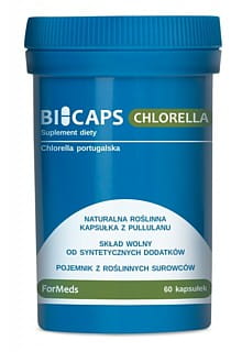 BICAPS Chlorella zawiera chlorellę portugalską wolną od zanieczyszczeń WWA i ETO. Linia BICAPS to suplementy diety bez zbędnych dodatków, zamknięte w roślinnej kapsułce pullulanowej, przyjaznej dla zdrowia i środowiska.