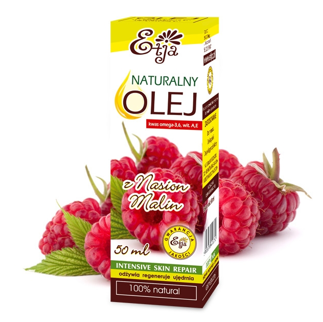 Naturalny, nierafinowany, kosmetyczny olej pozyskiwany w wyniku tłoczenia na zimno nasion malin. Bogaty w niezbędne nienasycone kwasy tłuszczowe omega-3 (ALA), omega-6 (LA), witaminy A i E. Wspomaga wytworzenie kolagenu i elastyny, zwiększając elastyczność i jędrność skóry oraz redukcję zmarszczek. Pełni funkcję naturalnego filtra przeciwsłonecznego, który absorbuje promieniowanie z zakresu UVB i UVA. Przeznaczony dla skóry suchej, wrażliwej i trądzikowej.